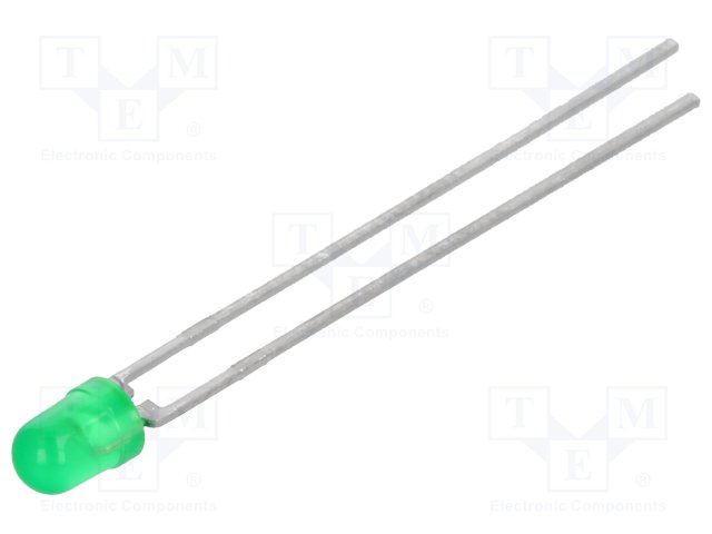 LED; 3мм; зеленый; 16÷32мкд; 30°; Поверхность: выпуклая; Шаг: 2,54мм |
