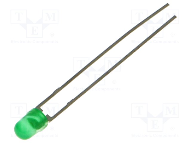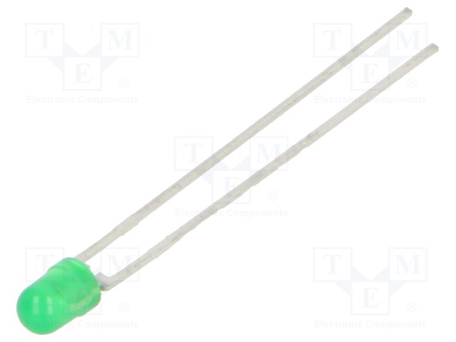 LED; 3мм; зеленый; 16÷37мкд; 32°; Поверхность: выпуклая; Шаг: 2,54мм |