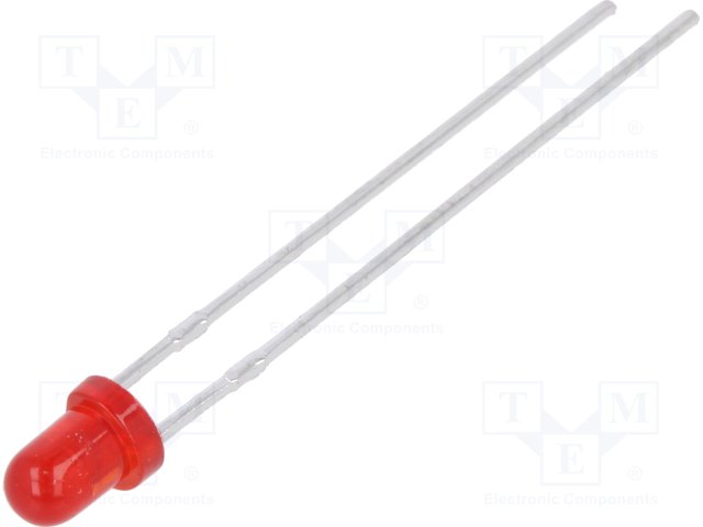 LED; 3мм; красный; 12÷30мкд; 50°; Поверхность: выпуклая; Шаг: 2,54мм |