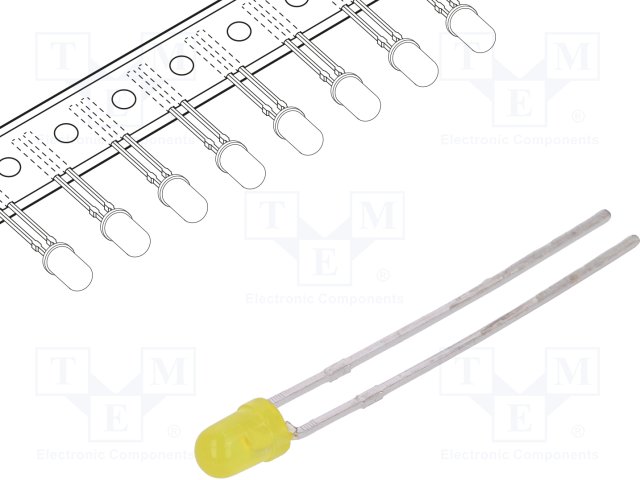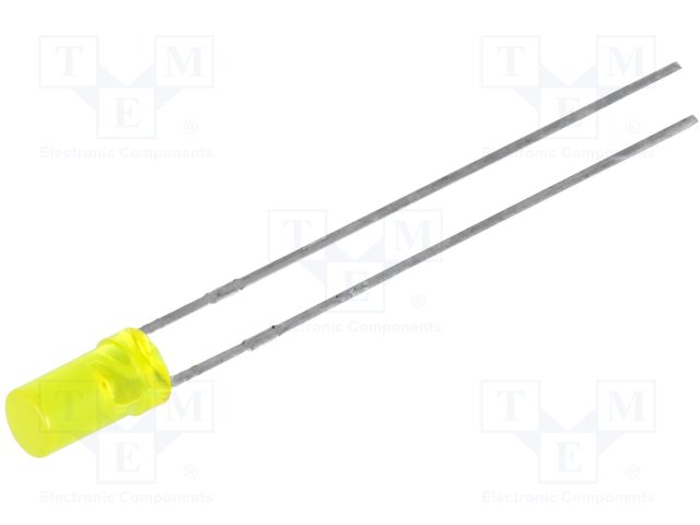 LED; 3мм; желтый; 2÷4мкд; 130°; Поверхность: вогнутая; Шаг: 2,54мм |