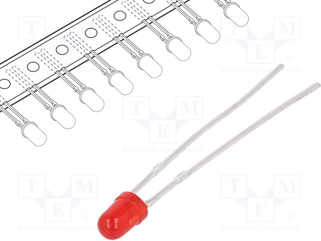 LED; 3мм; красный; 6÷12мкд; 130°; Поверхность: вогнутая; Шаг: 2,54мм |