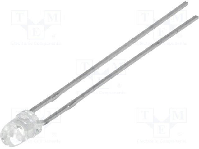 LED; 3мм; красный; 0,8÷5мкд; 60°; Поверхность: выпуклая; Шаг: 2,54мм |