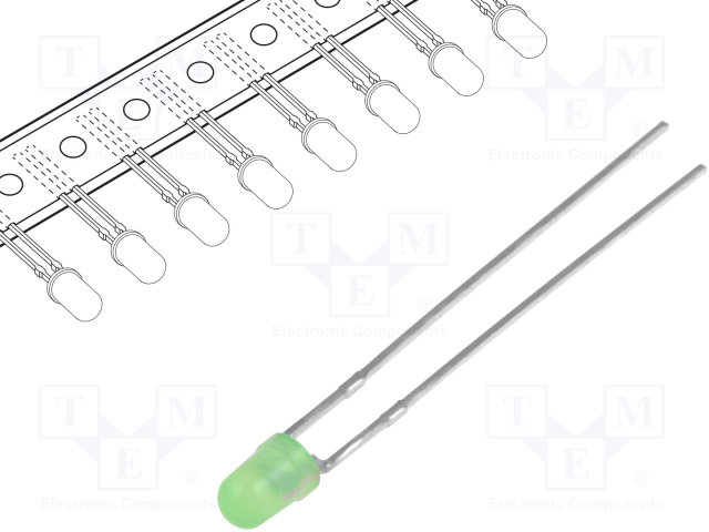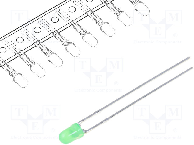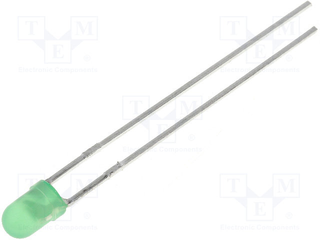 LED; 3мм; зеленый; 8÷20мкд; 60°; Поверхность: выпуклая; Шаг: 2,54мм |