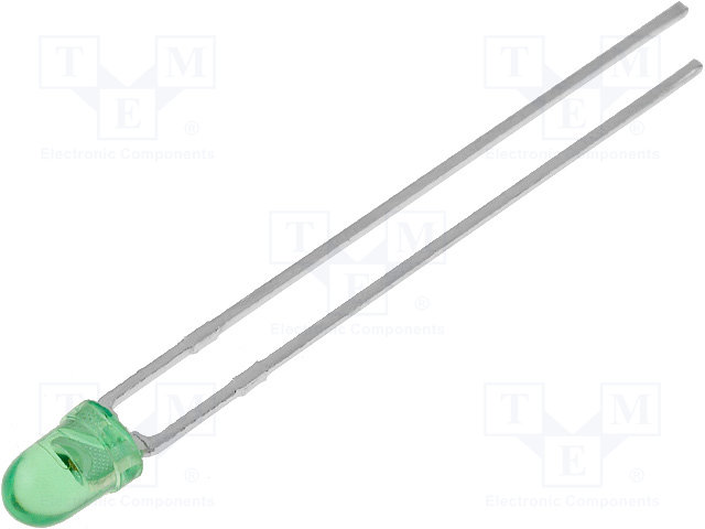 LED; 3мм; зеленый; 8000÷14000мкд; 30°; Поверхность: выпуклая |