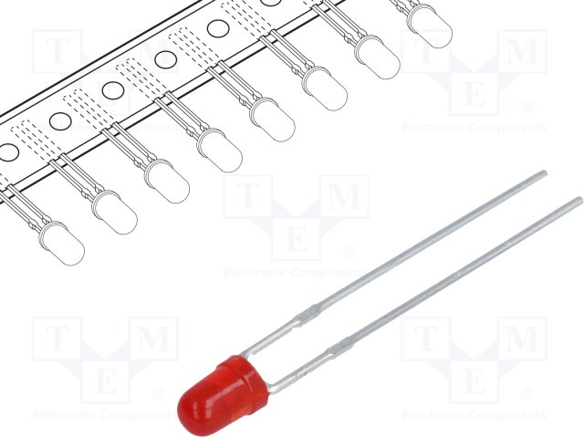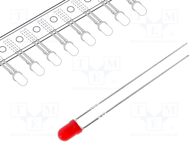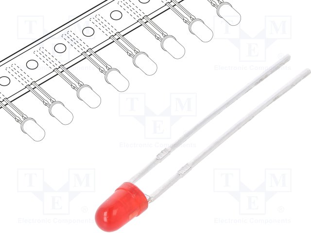 LED; 3мм; красный; 8÷50мкд; 60°; Поверхность: выпуклая; 2000шт. |