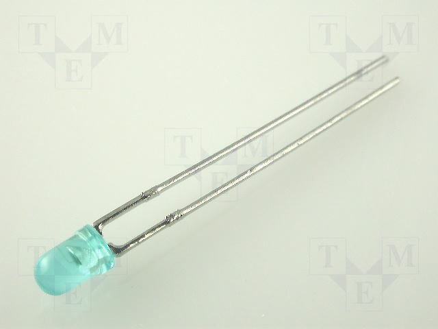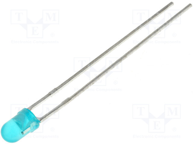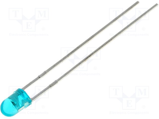 LED; 3мм; голубой; 18÷50мкд; 60°; Поверхность: выпуклая; Шаг: 2,54мм |