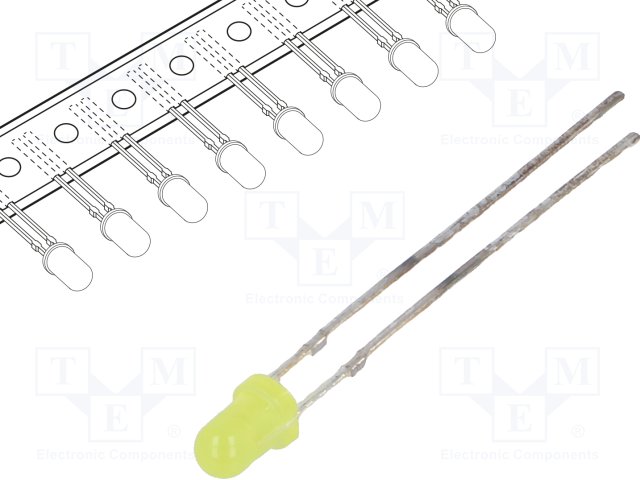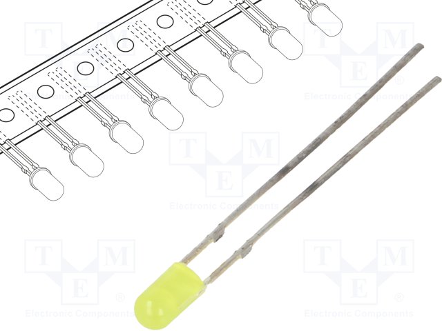 LED; 3мм; биполярный; желто-зеленый; 45÷68мкд; 140°; Шаг: 2,54мм |