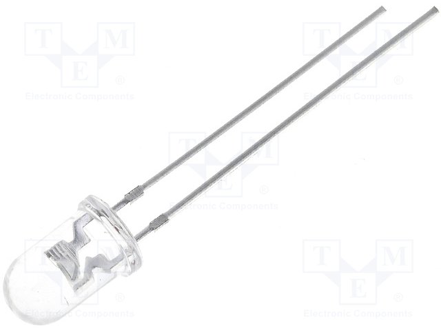 LED; 5мм; красный; 20мкд; 30°; Поверхность: выпуклая; Шаг: 2,54мм |