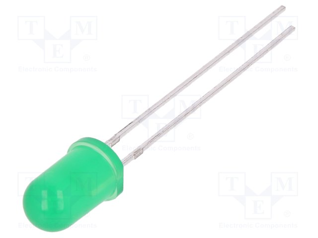 LED; 5мм; зеленый; 6300÷8200мкд; 35°; Поверхность: выпуклая |