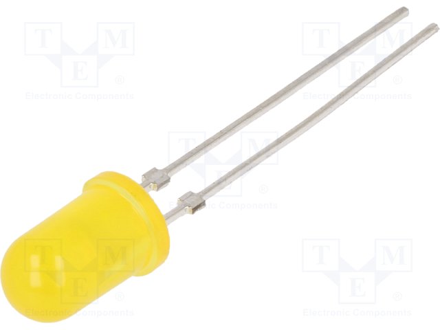LED; 5мм; желтый; 1,6÷10мкд; 60°; Поверхность: выпуклая; Шаг: 2,54мм |
