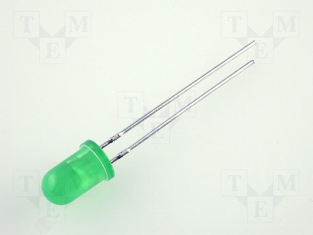 LED; 5мм; зеленый; 170÷300мкд; 15°; Поверхность: выпуклая |