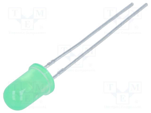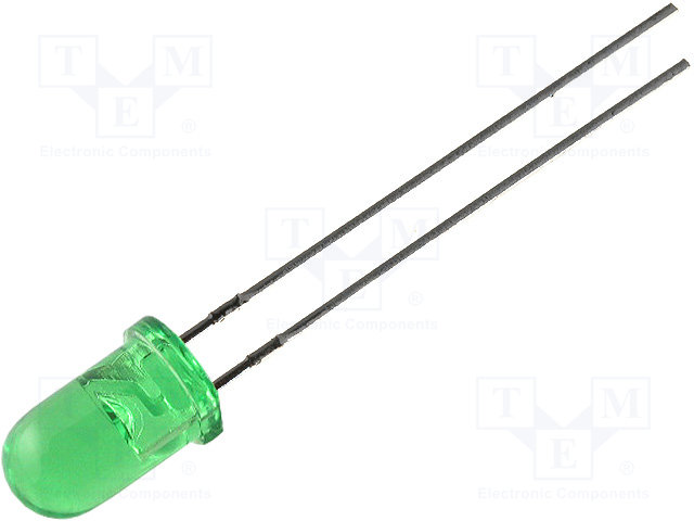 LED; 5мм; зеленый; 8÷20мкд; 60°; Поверхность: выпуклая; Шаг: 2,54мм |