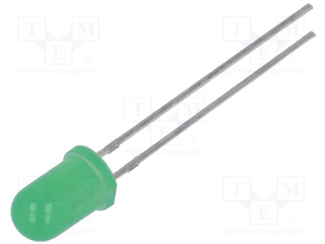 LED; 5мм; зеленый; 2180÷3000мкд; 100°; Поверхность: выпуклая |
