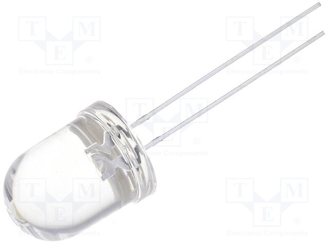 LED; 10мм; белый холодный; 5800мкд; 30°; без бортика; Шаг: 2,54мм |