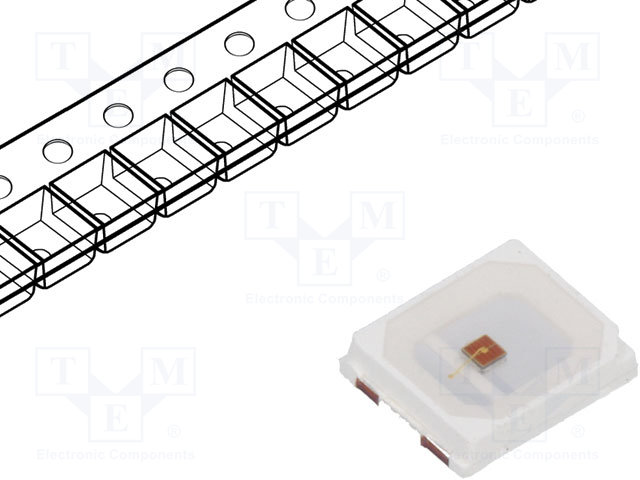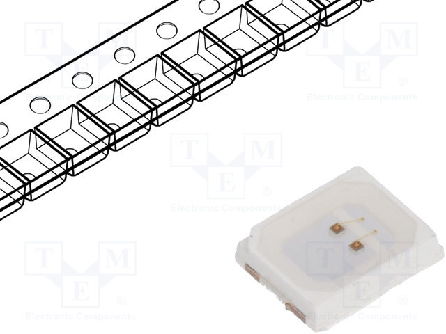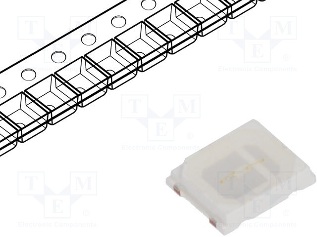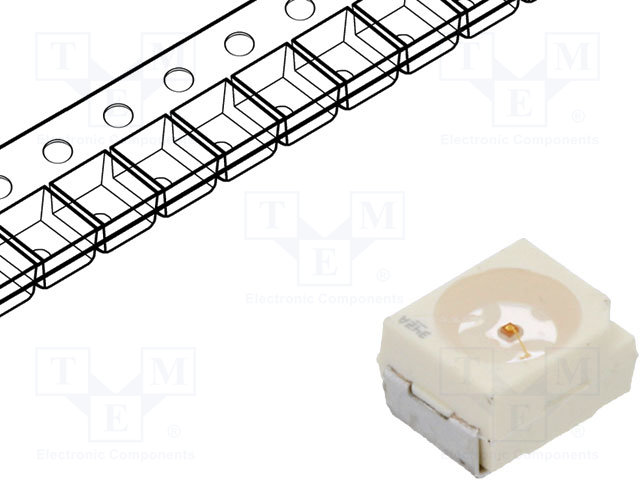 LED; SMD; 3528,PLCC2; красный; 70(тип)млм; 14÷35,5мкд; 3,4x3x2,1мм