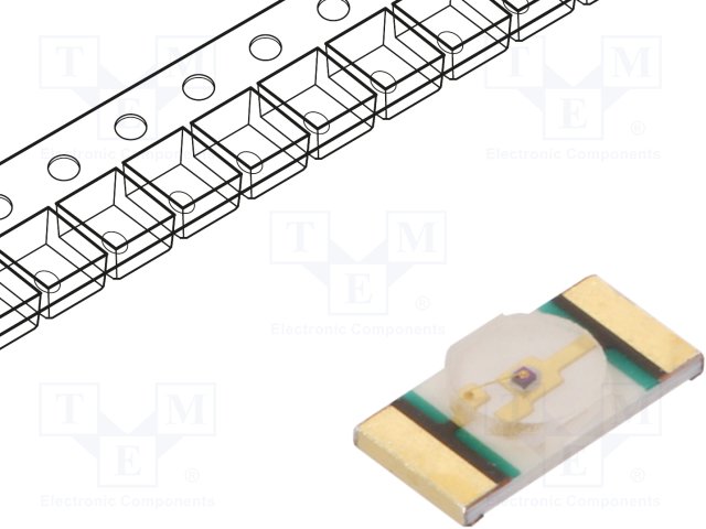 LED; SMD; 0603; зеленый; 28÷280мкд; 1,6x0,8x0,35мм; 130°; 2,5÷3,1В