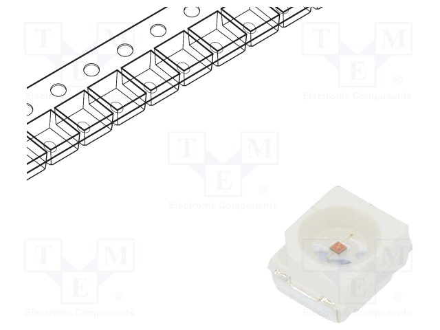 LED; SMD; 3528,PLCC2; красный; 542÷1192мкд; 3,5x2,8x1,9мм; 120°