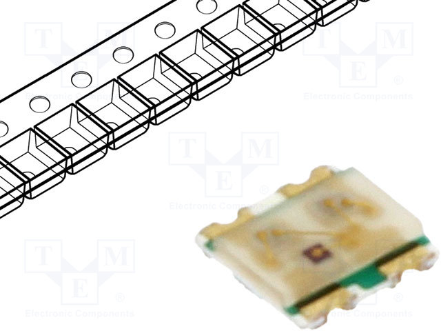 LED; SMD; 3528,PLCC4; оранжевый/зеленый; 3,5x2,8x1,9мм; 120°; 20мА