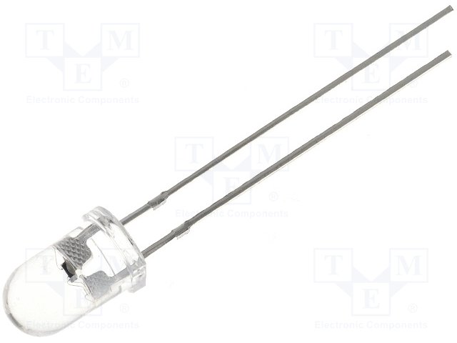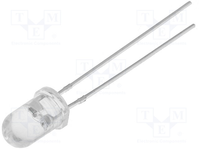LED; 5мм; белый холодный; 4200÷5800мкд; 100°; 3÷5В; 20мА; 1,8Гц