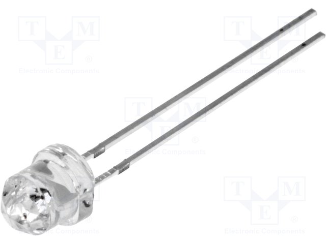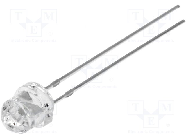 LED; 5мм; белый холодный; 7000÷8400мкд; 30°; 3÷5В; 20мА; Шаг: 2,54мм