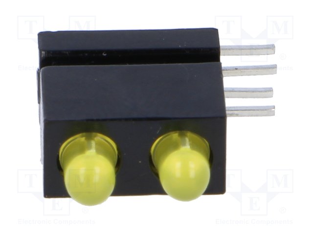LED; в корпусе; желтый; 3мм; Кол-во диод: 2; 20мА; 60°; 10÷20мкд |