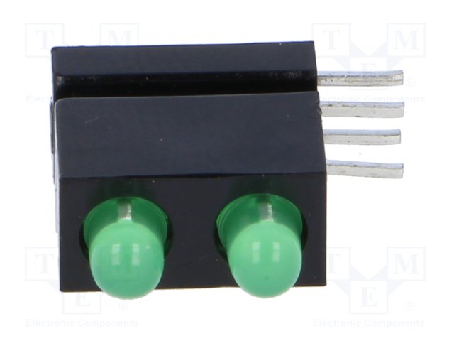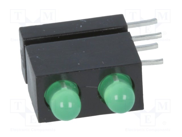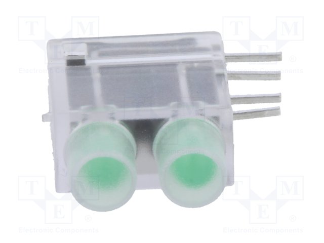 LED; в корпусе; зеленый; 1,8мм; Кол-во диод: 2; 10мА; 38°; 2,1В |