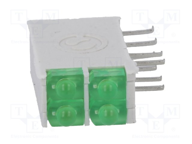 LED; в корпусе; зеленый; 1,8мм; Кол-во диод: 4; 10мА; 38°; 2,1В |