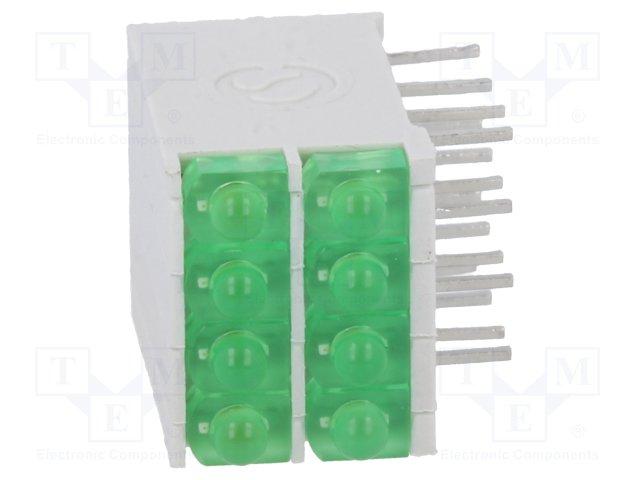 LED; в корпусе; зеленый; 1,8мм; Кол-во диод: 8; 10мА; 38°; 2,1В |