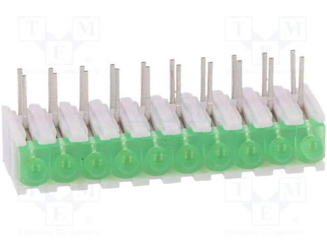 LED; в корпусе; зеленый; Кол-во диод: 10; 20мА; 38°; 2,1В; 25мкд