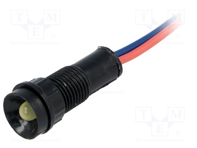Индикат.лампа: LED; выпуклый; 230ВAC; Отв: Ø13мм; провода 300мм