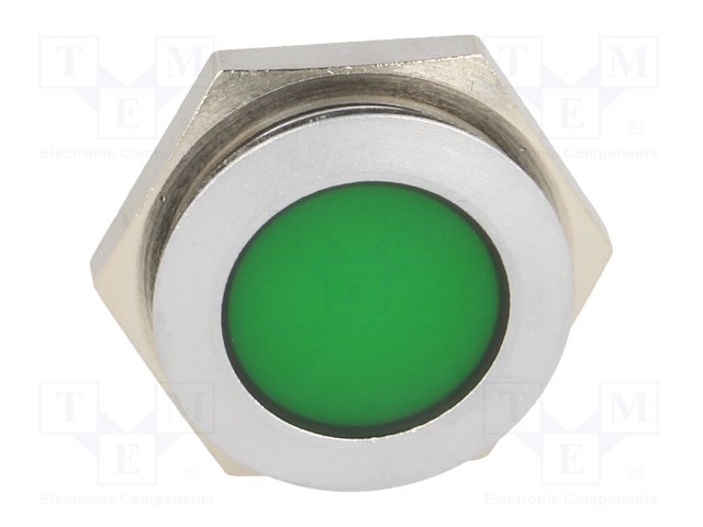 Индикат.лампа: LED; плоский; 12÷14ВDC; Отв: Ø22мм; IP67; металл |