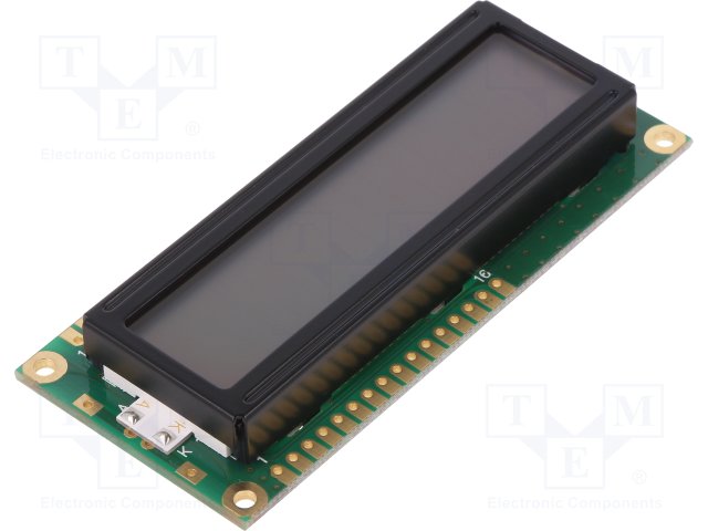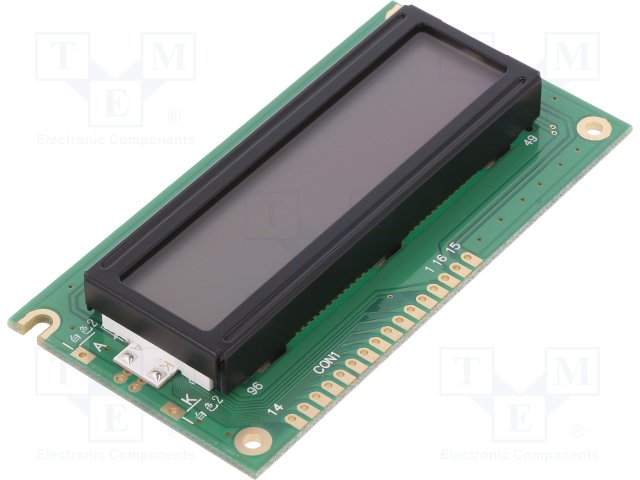 Дисплей: LCD; алфавитно-цифровой; STN Positive; 16x2; LED; PIN: 16 |