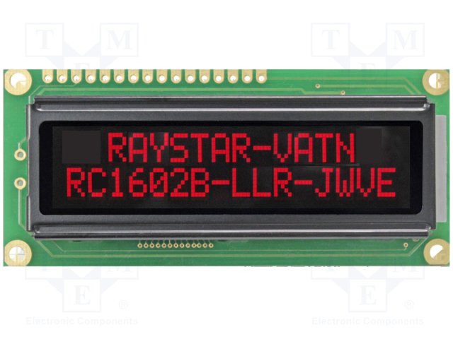 Дисплей: LCD; алфавитно-цифровой; STN Positive; 16x2; LED; PIN: 16 |