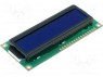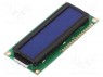 Дисплей: LCD; алфавитно-цифровой; STN Negative; 16x2; голубой |