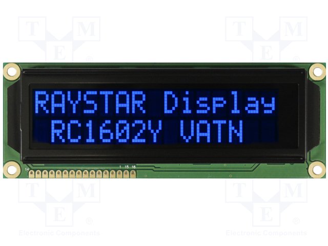 Дисплей: LCD; алфавитно-цифровой; STN Positive; 16x2; LED; PIN: 14 |