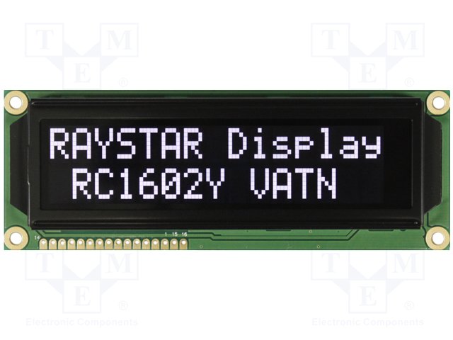 Дисплей: LCD; алфавитно-цифровой; FSTN Negative; 16x2; LED; PIN: 16 |