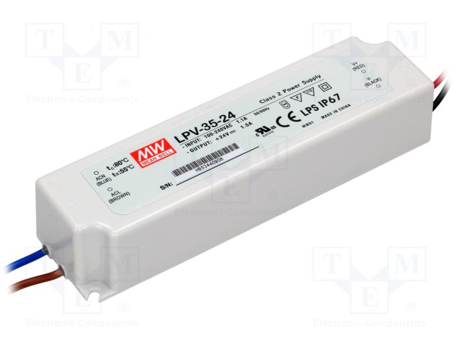Блок питания: импульсный; LED; 36Вт; 24ВDC; 1,5А; 90÷264ВAC; IP67 |