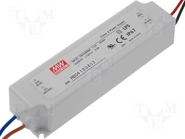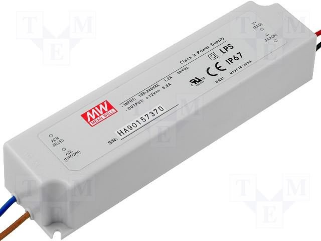 Блок питания: импульсный; LED; 60Вт; 12ВDC; 5А; 90÷264ВAC; IP67 |