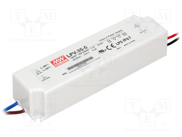 Блок питания: импульсный; LED; 30Вт; 5ВDC; 5А; 90÷264ВAC; IP67; 340г |