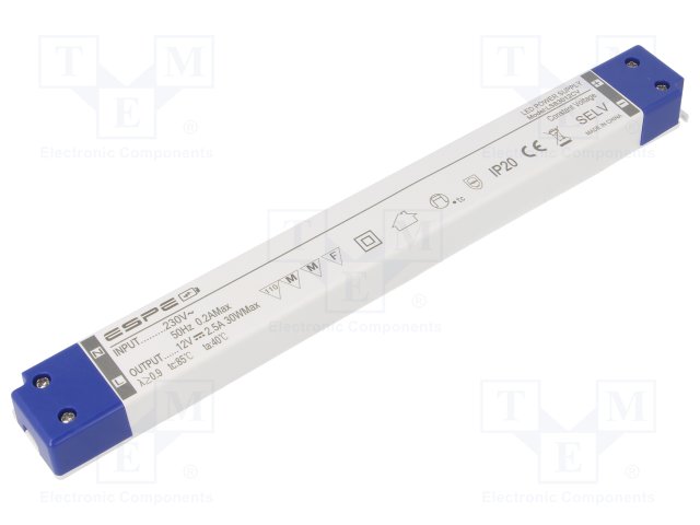 Блок питания: импульсный; LED; 30Вт; 12ВDC; 2,5А; 220÷240ВAC; IP20 |