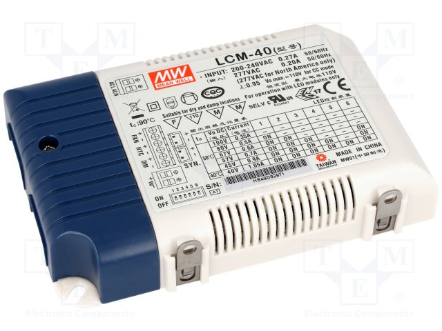Блок питания: импульсный; LED; 42Вт; 2÷100ВDC; 350÷1050мА; IP20 |