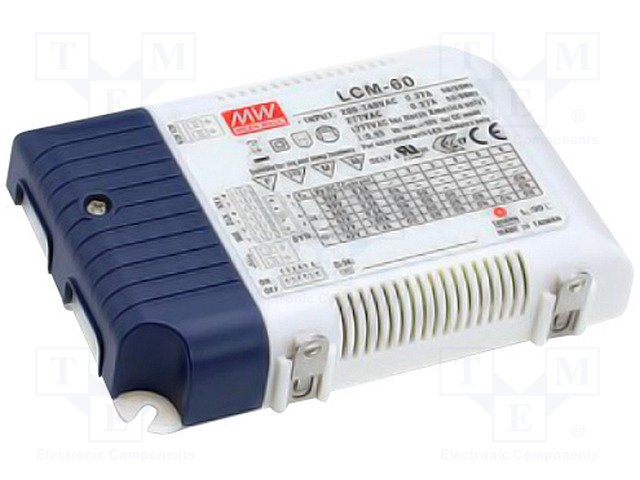 Блок питания: импульсный; LED; 65Вт; 60ВDC; 1,08А; 180÷295ВAC; 150г |