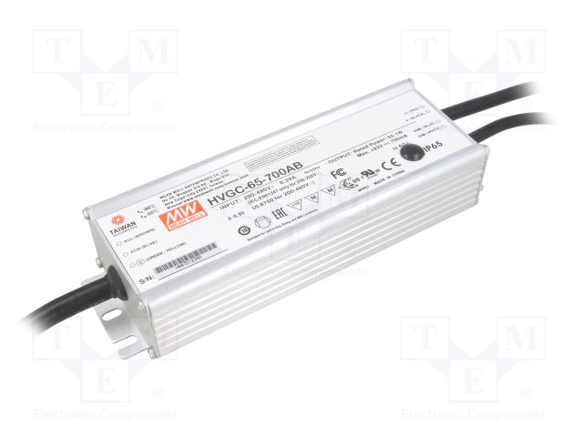 Блок питания: импульсный; LED; 65,1Вт; 9÷93ВDC; 700мА; 180÷528ВAC |