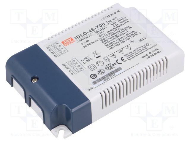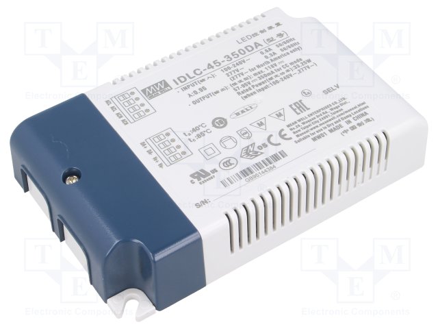 Блок питания: импульсный; LED; 45,15Вт; 26÷43ВDC; 1050мА; IP20 |