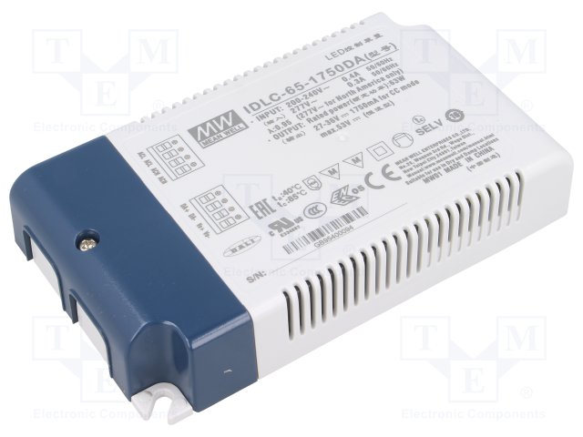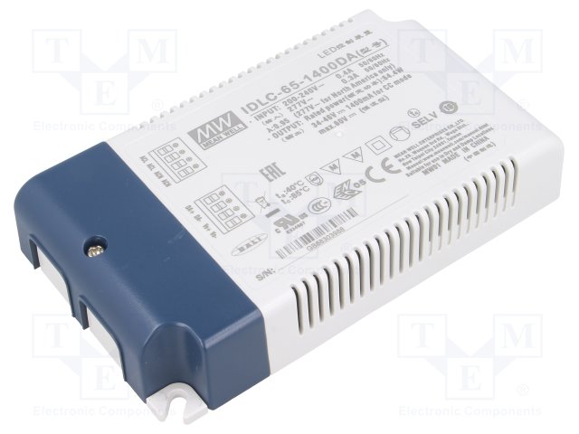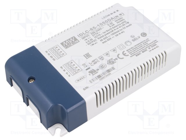 Блок питания: импульсный; LED; 65,1Вт; 46÷62ВDC; 1050мА; IP20; 230г |