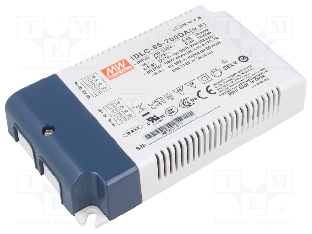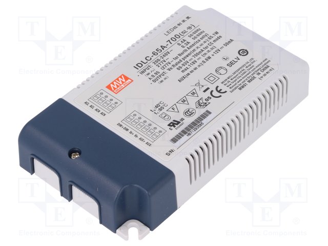 Блок питания: импульсный; LED; 65,1Вт; 69÷93ВDC; 700мА; 180÷295ВAC |