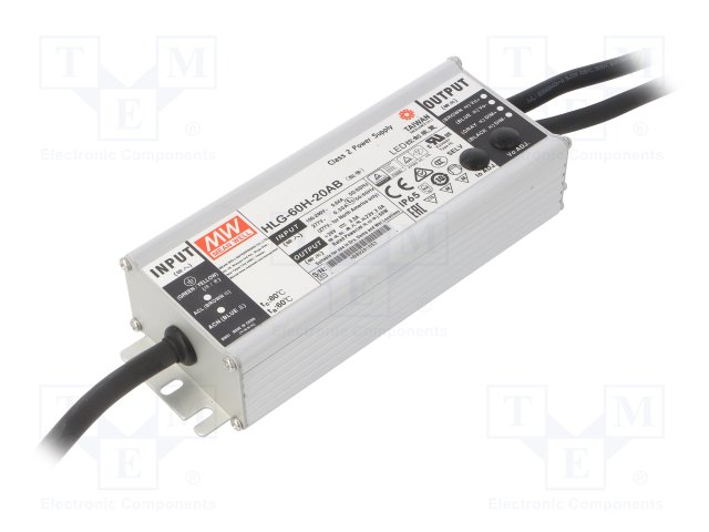 Блок питания: импульсный; LED; 60Вт; 20ВDC; 17÷22ВDC; 1,8÷3А; IP65
