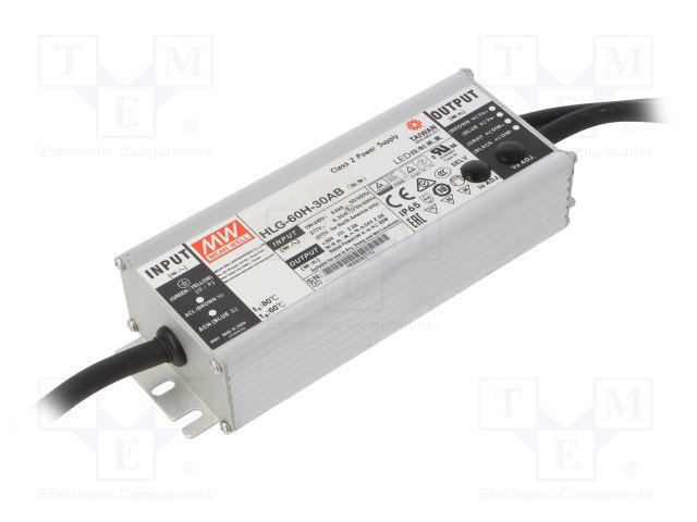 Блок питания: импульсный; LED; 60Вт; 30ВDC; 27÷33ВDC; 1,2÷2А; IP65
