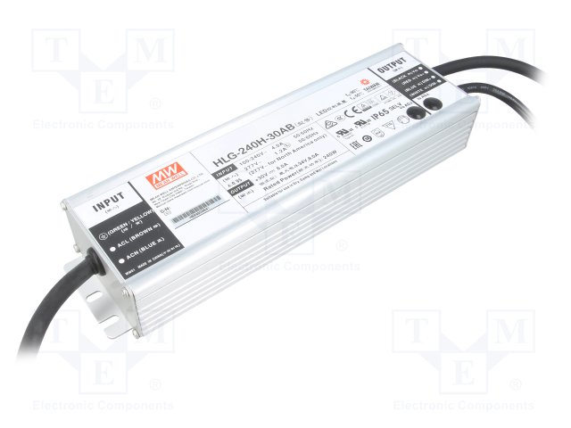Блок питания: импульсный; LED; 240Вт; 30ВDC; 8А; 90÷305ВAC; IP67 |