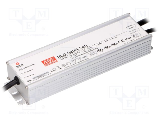 Блок питания: импульсный; LED; 240,3Вт; 54ВDC; 4,45А; 90÷305ВAC |